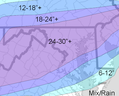 Well, I thought my last map would be my final forecast, but latest trends indicate that my totals would be too low. Here is my third and final call for this storm: